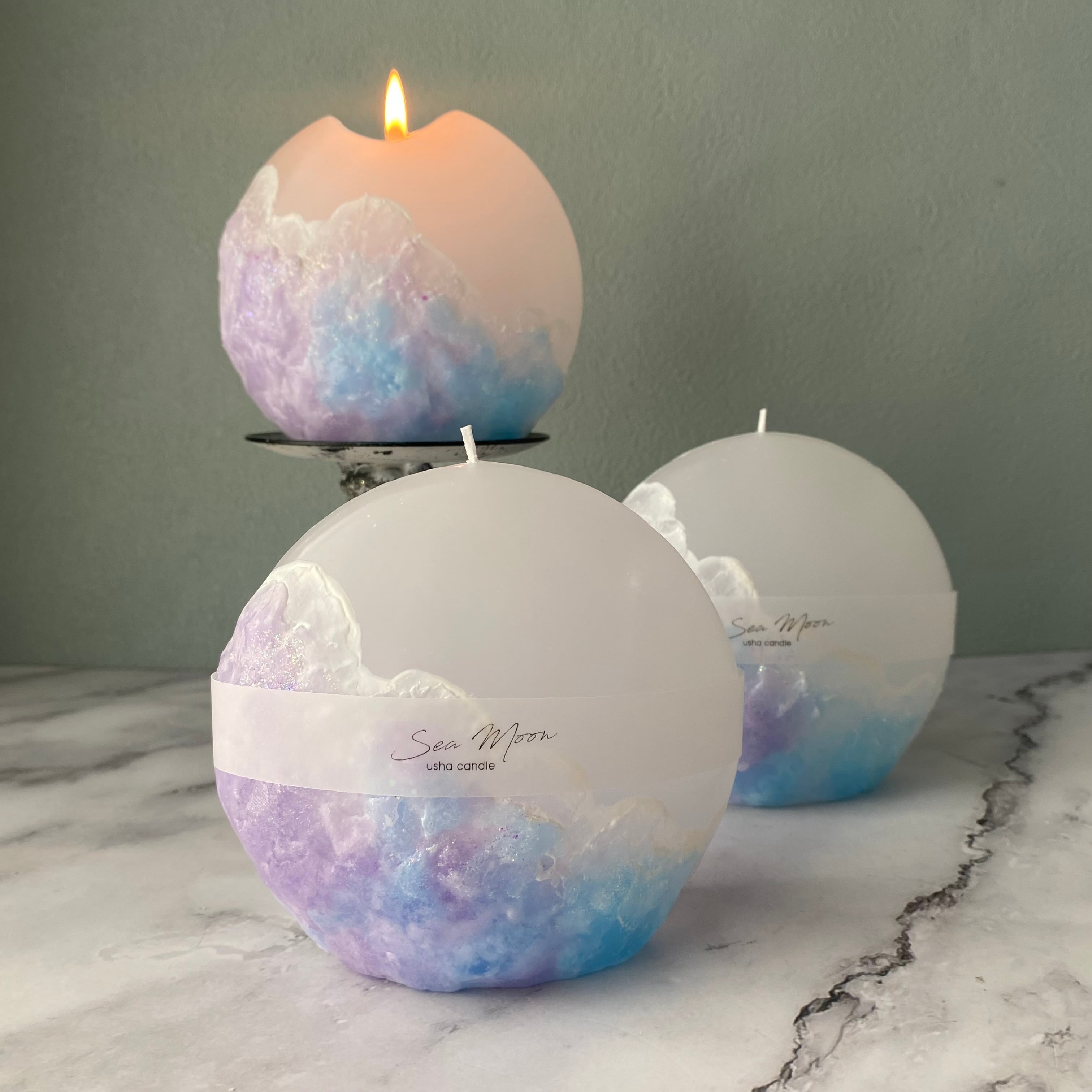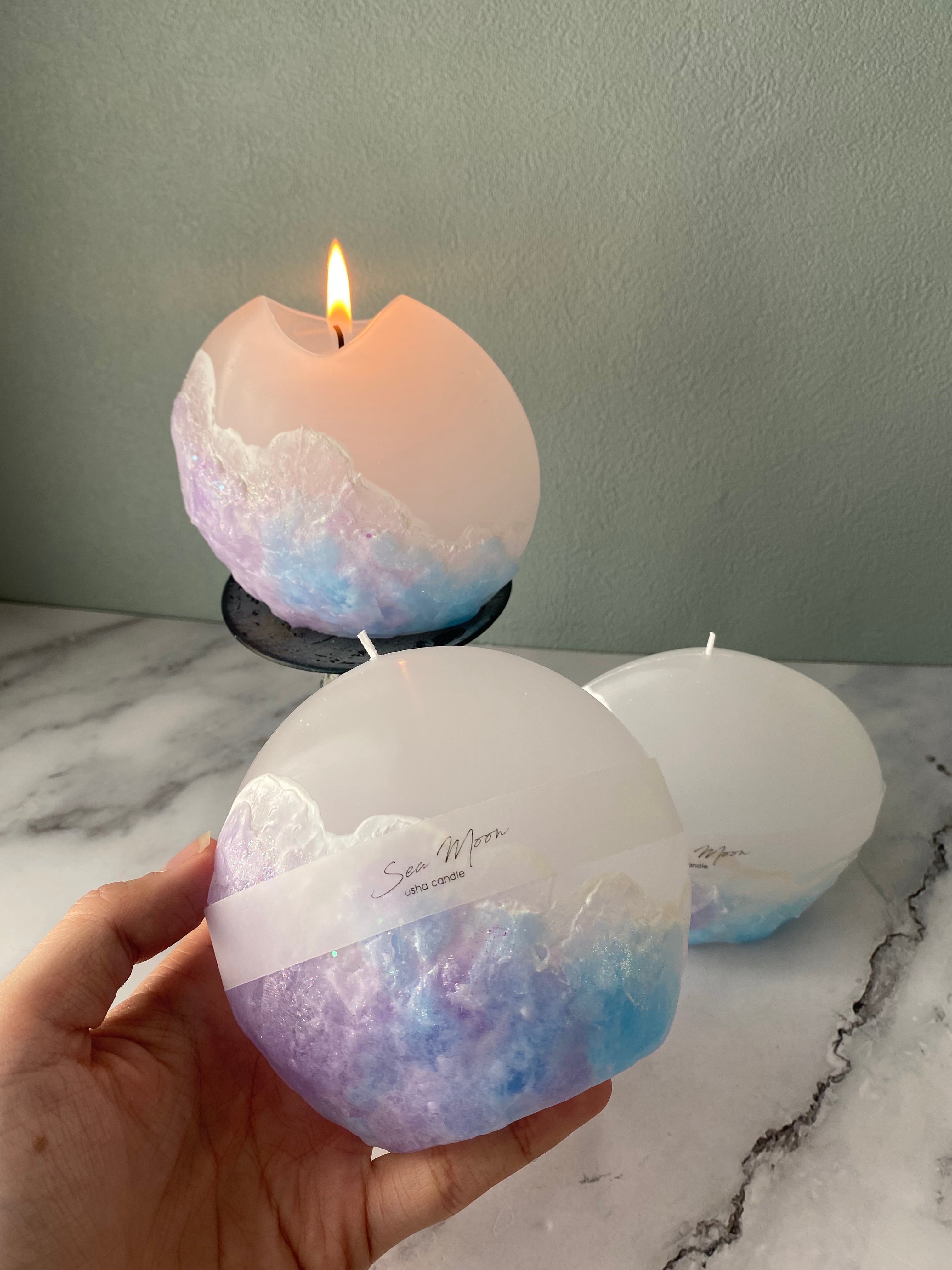 灯してロウが溶けると幻想的な月ような形になるムーンキャンドルです。