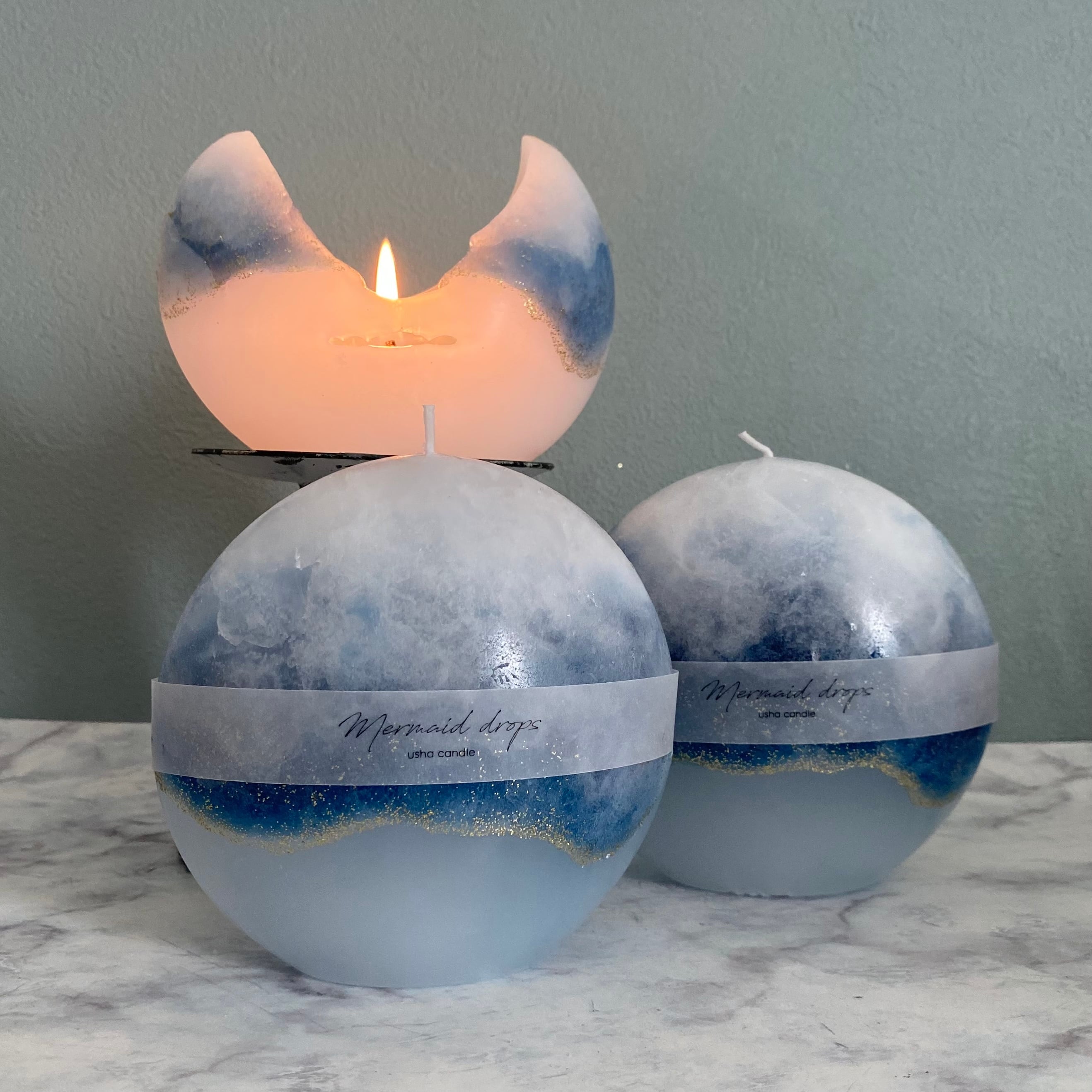 人魚の鱗が美しい七色の雫を思わせるような美しいキャンドルです。