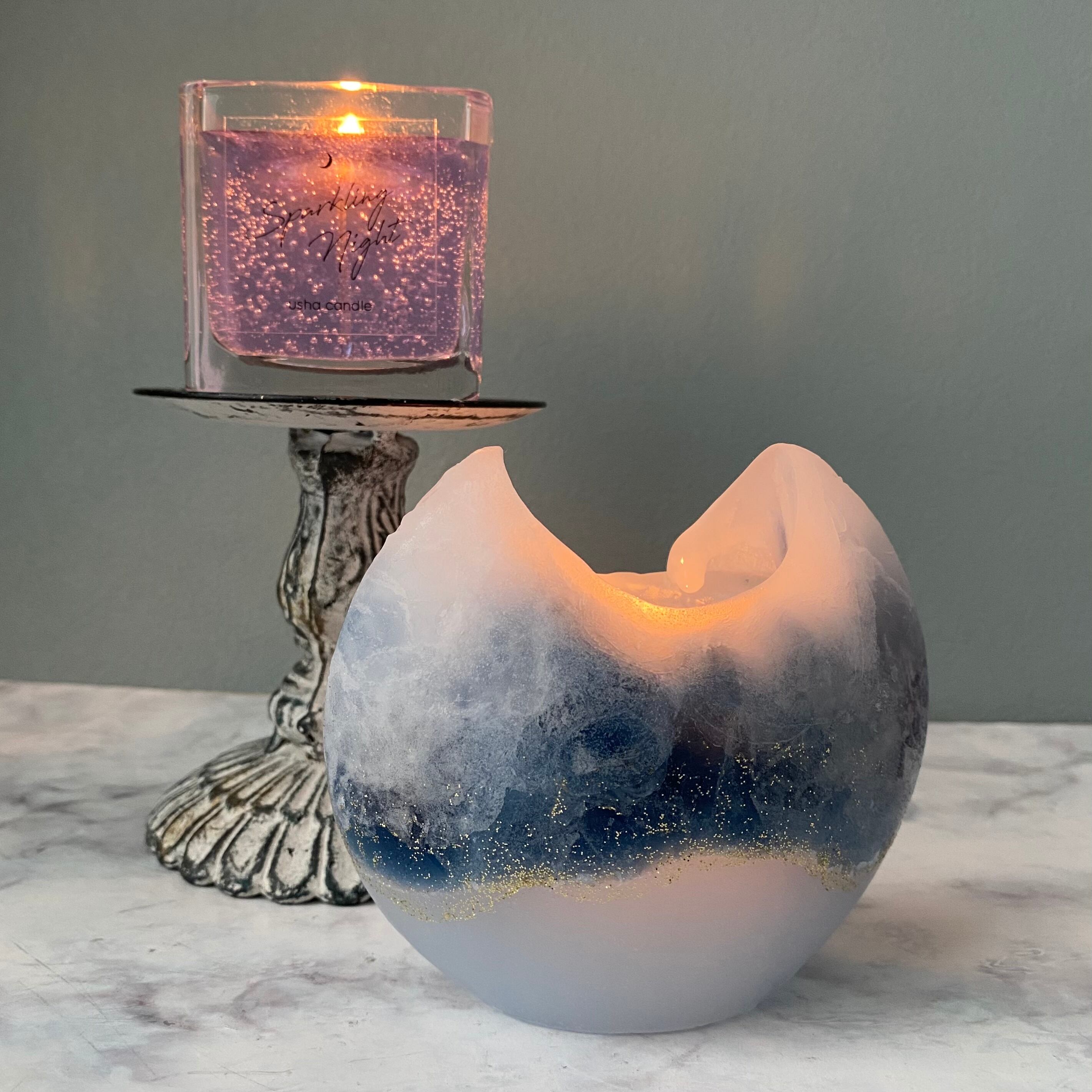 灯してロウが溶けると幻想的な月ような形になります。