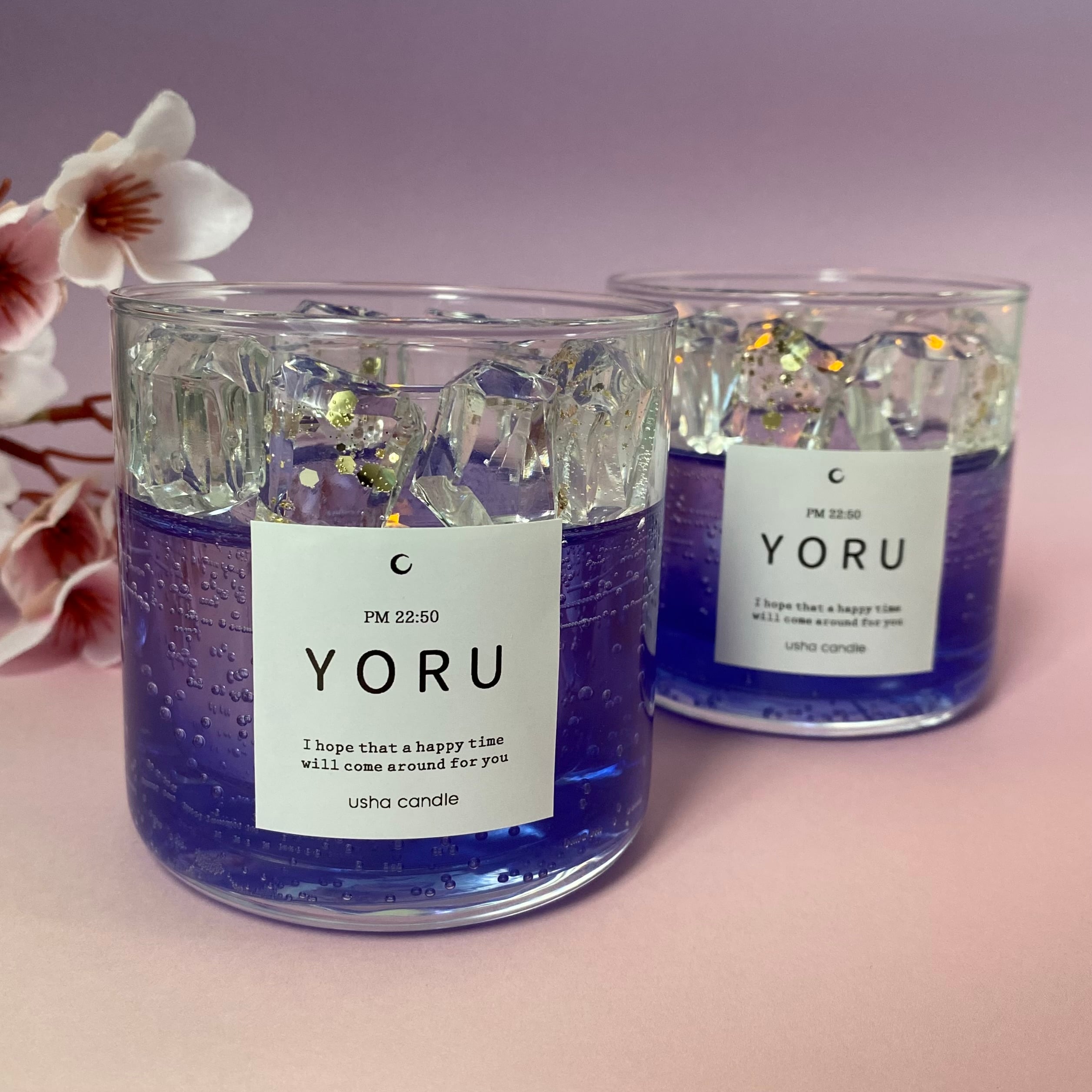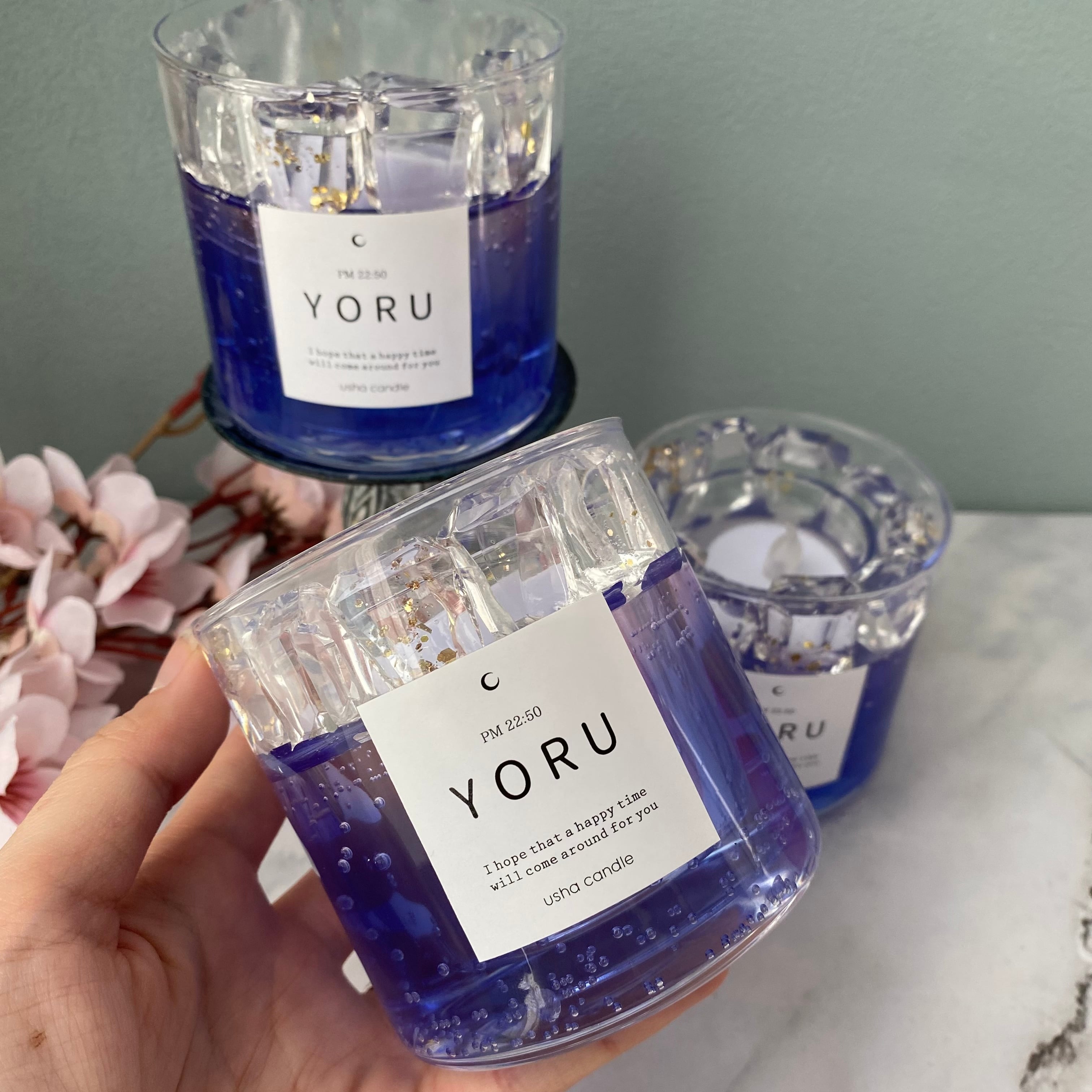 ガラス容器に入ったジェルのランタンです。